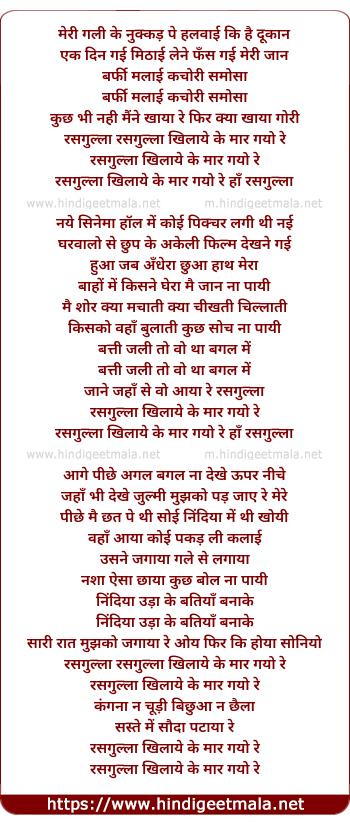 Lyrics of Rasgulla Khilaye Ke Maar Gayo Re - रसगुल्ला खिलाये के मार गयो रे