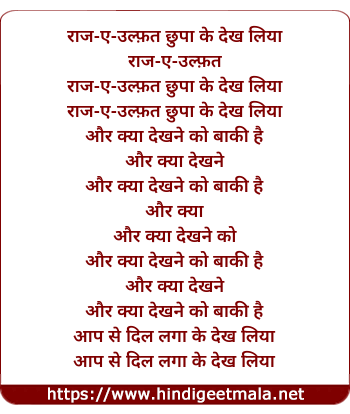 Lyrics of Raz-E-Ulfat - राज-ए-उल्फ़त छुपा के देख लिया