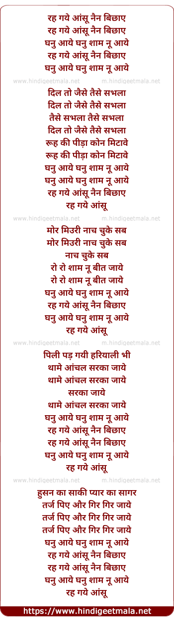 Lyrics of Reh Gaye Ansu - रह गये आंसू