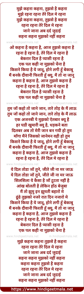 Lyrics of Rehna Hai Tere Dil Me Rehna Hai - रहना है तेरे दिल मे रहना है