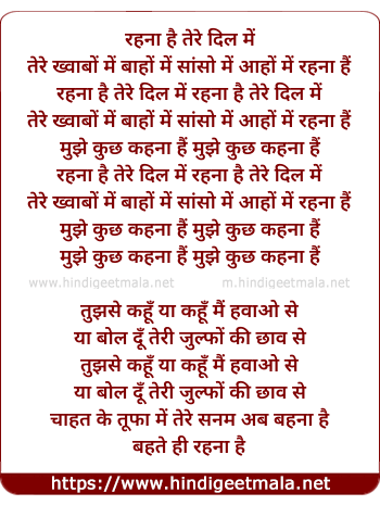 Lyrics of Rehna Hai Tere Dil Mein - रहना है तेरे दिल में