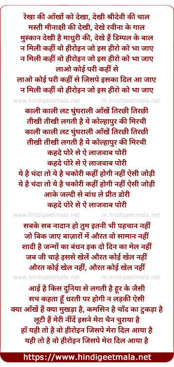 Lyrics of Rekha Ki Aankhon Ko Dekha, Naa Mili Kahin Vo Heroine - रेखा की आँखों को देखा, ना मिली कहीं वो हीरोइन