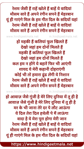 Lyrics of Resham Jaisi Hain Raahen - रेशम जैसी हैं राहें