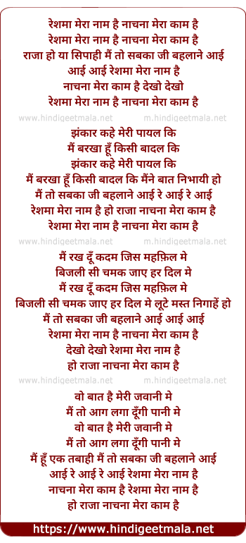 Lyrics of Reshma Mera Naam Hai - रेशमा मेरा नाम है