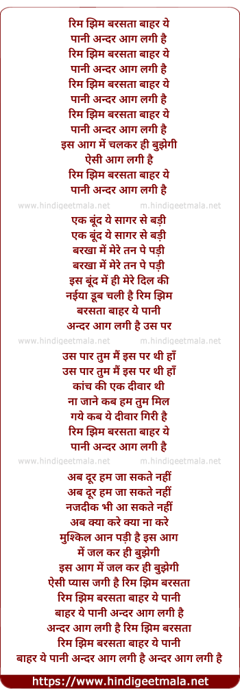 Lyrics of Rim Jhim Barasta Bahar Ye - रिम झिम बरसता बाहर ये