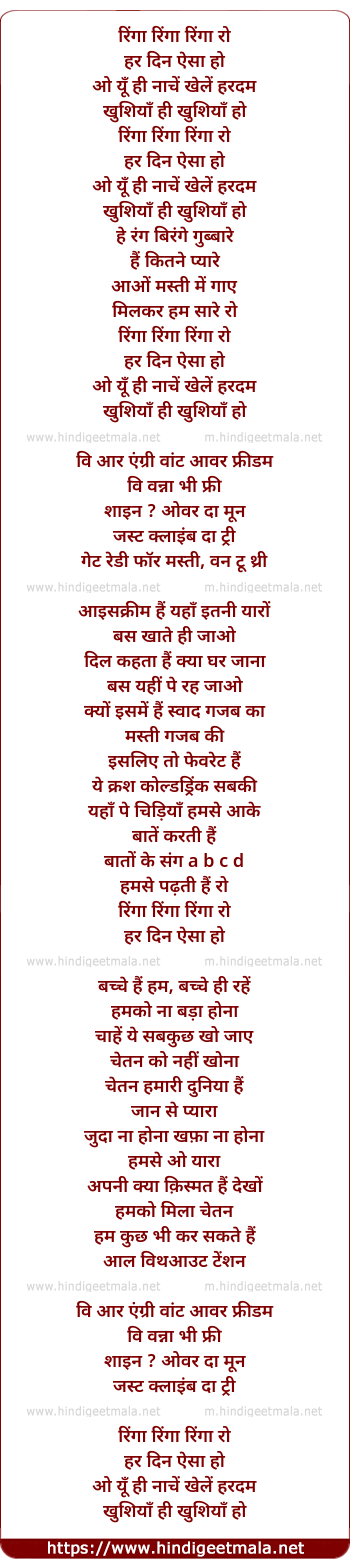 Lyrics of Ringa Ringa Ringa Ro Har Din Aisa Ho - रिंगा रिंगा रिंगा रो हर दिन ऐसा हो