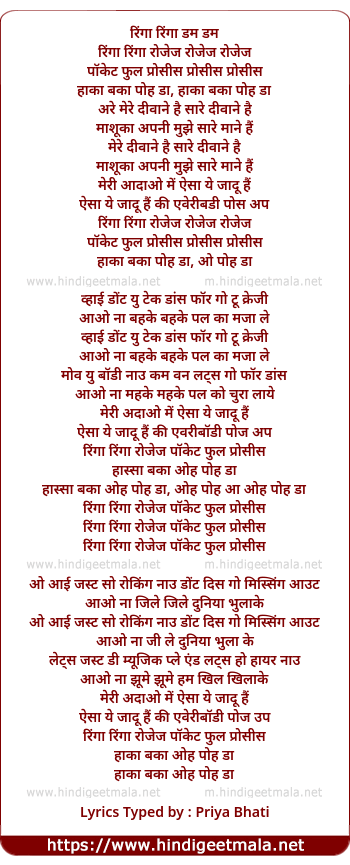 Lyrics of Ringa Ringa Roses (Remix) - रिंगा रिंगा डम डम