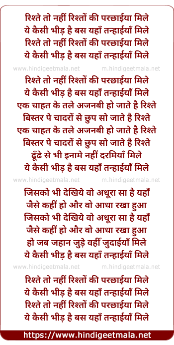 Lyrics of Rishte To Nahi Rishto Ki - रिश्ते तो नहीं रिश्तों की