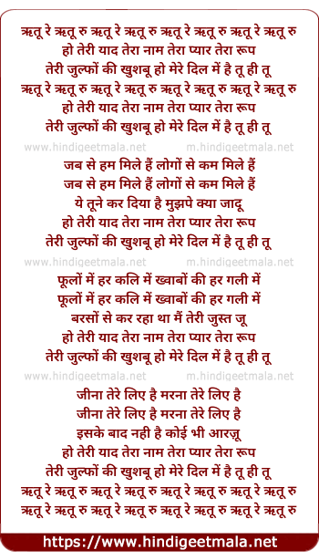 Lyrics of Ritu Ru Ritu Ru, Le Liya Tera Naam - ऋतू रु ऋतू रु ले लिया तेरा नाम