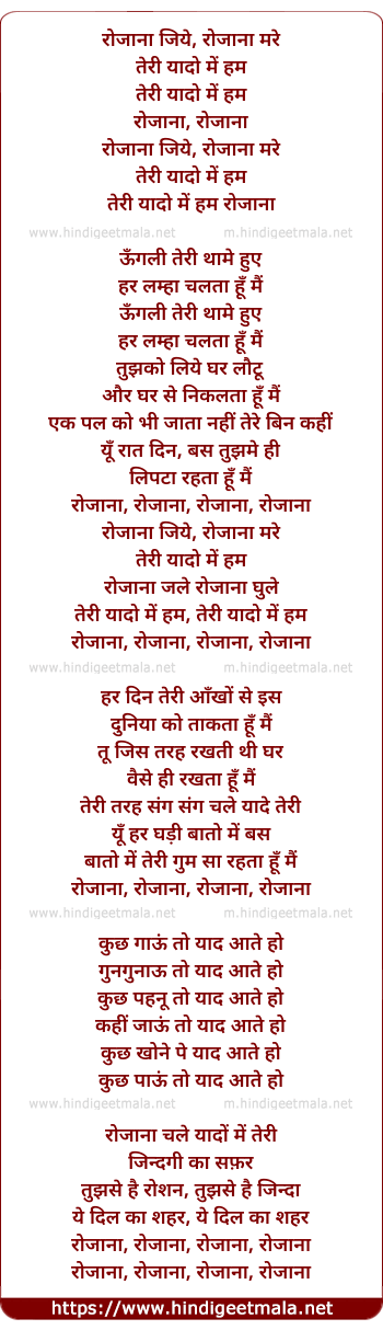 Lyrics of Rojaana Jiye, Rojaana Mare - रोजाना जिये, रोजाना मरे