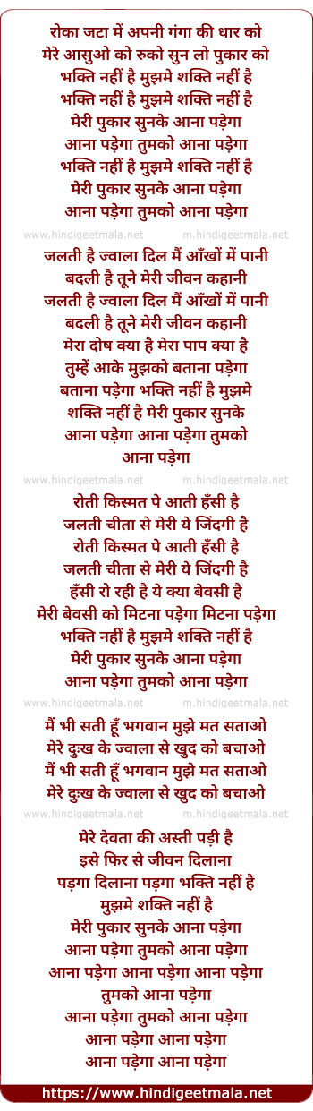 Lyrics of Roka Jata Me Apni Ganga Ki Dhar Ko (Bhakti Nahi Hai) - रोका जटा में अपनी गंगा की धार को