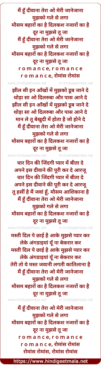 main hun diwana tera o meri janejana