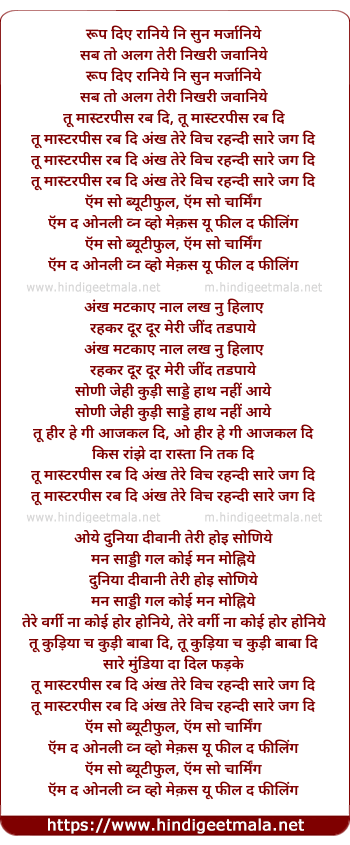 tu masterpiece rab di ankh tere vich rahndi sare jag di