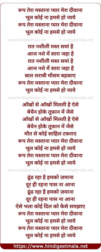 Lyrics of Roop Tera Mastanaa - रूप तेरा मस्ताना