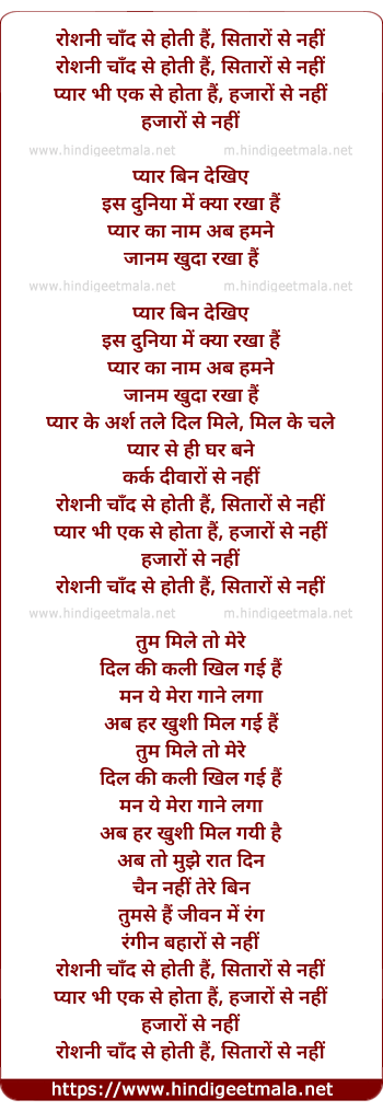 Lyrics of Roshani Chaad Se Hoti Hai, Sitaaron Se Nahi - रोशनी चाँद से होती हैं, सितारों से नहीं