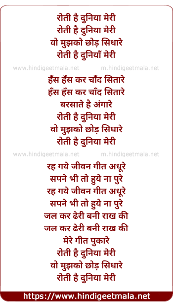 Lyrics of Roti Hai Duniya Meri - रोती है दुनिया मेरी