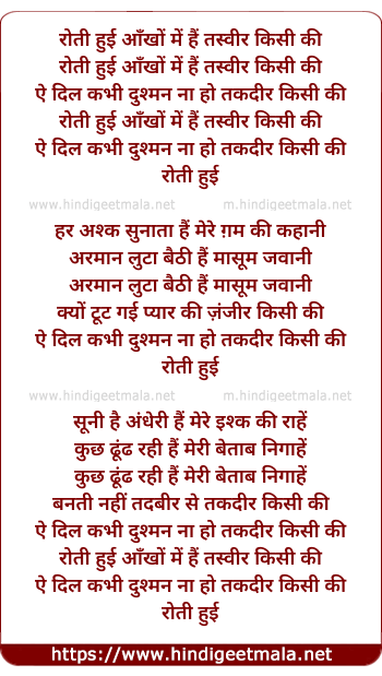 Lyrics of Roti Hui Ankho Me Tasveer Kisi Ki - रोती हुई आँखों में हैं तस्वीर किसी की