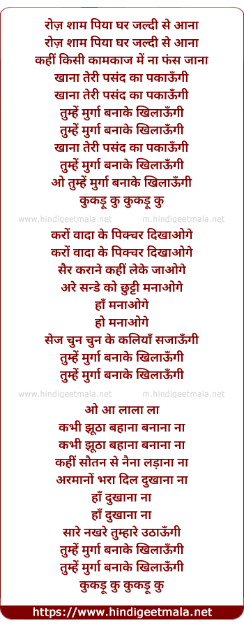 Lyrics of Roz Sham Piya Ghar Jaldi Se Aana - रोज़ शाम पिया घर जल्दी से आना
