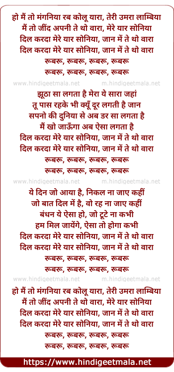 ho main toh manganiya rab kolu yaara, teri umara lambiya