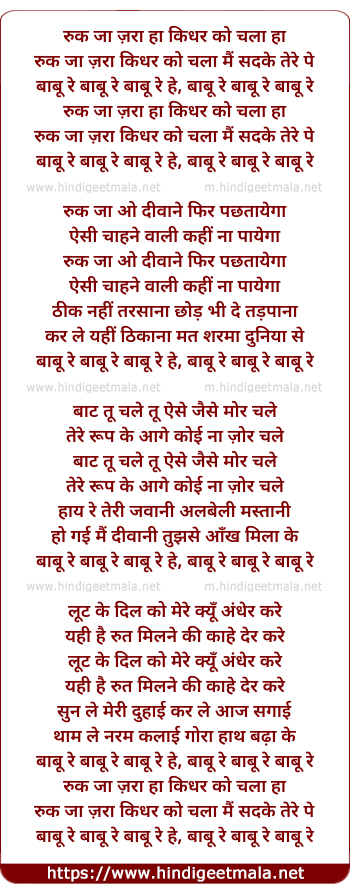 Lyrics of Ruk Ja Zara Kidhar Ko Chala - रुक जा ज़रा हा किधर को चला