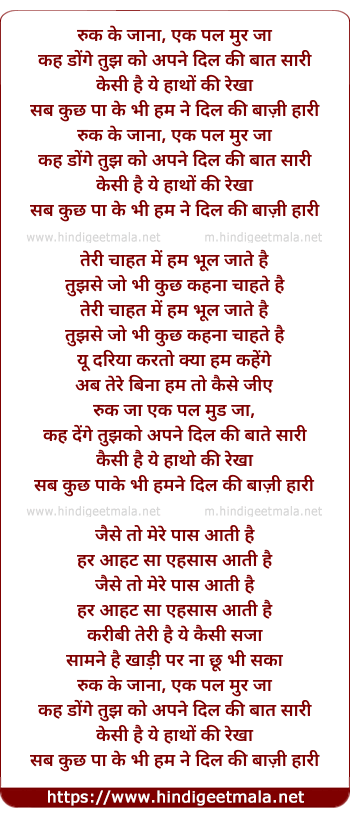 Lyrics of Ruk Ke Jana (Everytime I See You Remix) - रुक के जाना, एक पल मुर जा