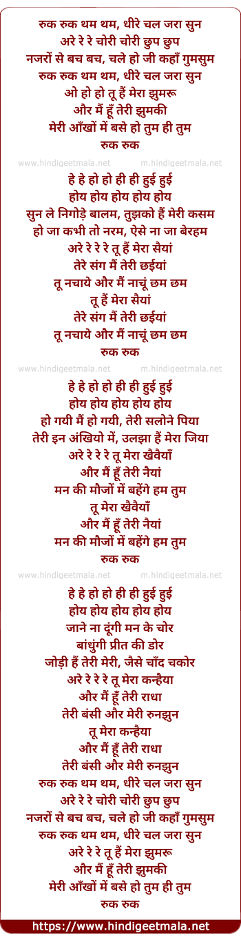 Lyrics of Ruk Ruk Tham Tham Dheere Chal - रुक रुक थम थम धीरे चल