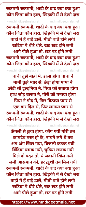 Lyrics of Rukamani Rukamani Shaadi Ke Baad Kyaa Kyaa Huaa - रुकमनी रुकमनी, शादी के बाद क्या क्या हुआ