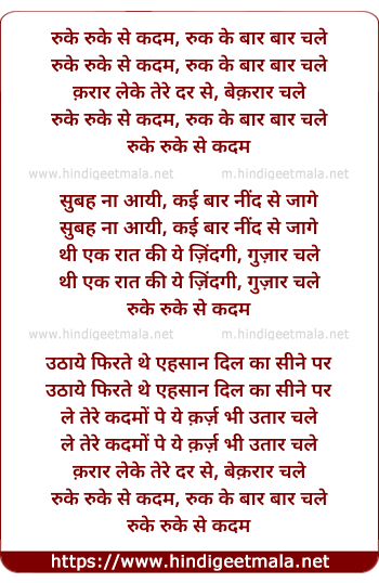 Ruke Ruke Se Kadam Ruk Ke Baar Baar Chale - रुके रुके से कदम रुक के बार बार चले