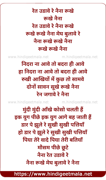 Lyrics of Rukhe Naina Megh Bulave Re - रूखे नैना मेघ बुलावे रे