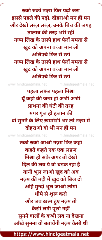 Lyrics of Ruko Ruko Nazm Pheer Padho - रुको रुको नज़्म फिर पढ़ो जरा