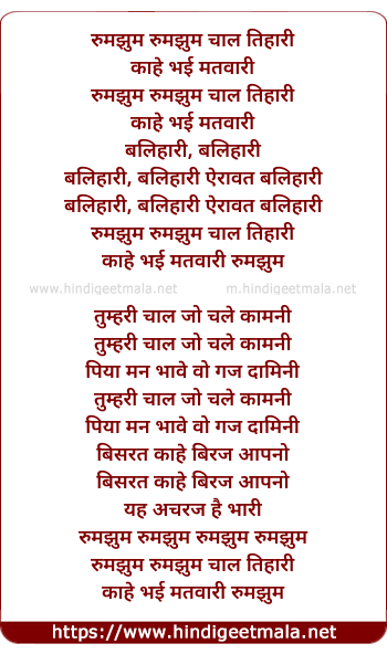 Lyrics of Rumajhum Rumajhum Chaal Tihaari - रुमझुम रुमझुम चाल तिहारी