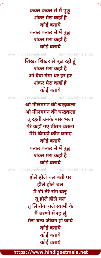 Lyrics of Kankar Kankar Se Mai Puchhu - कंकर कंकर से मैं पुछू