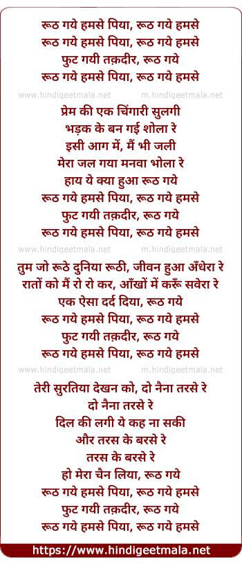 Lyrics of Ruth Gaye Humse Piya - रूठ गये हमसे पिया, रूठ गये हमसे