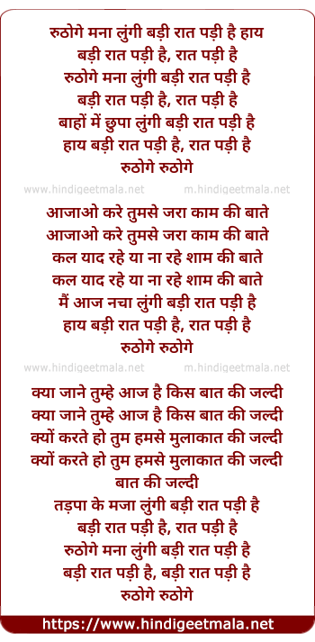 Lyrics of Ruthoge Mana Lungi - रुठोगे मना लुंगी