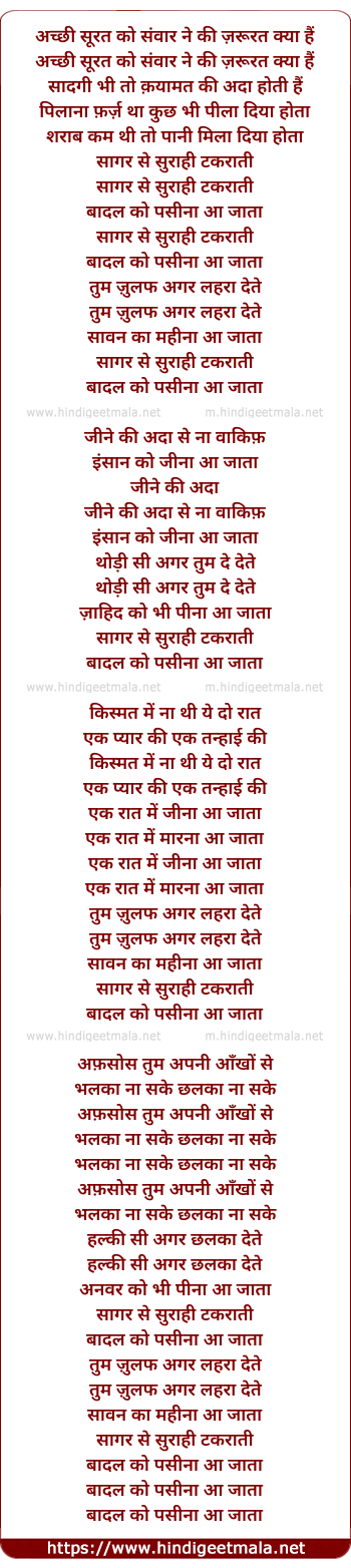 Lyrics of Saagar Se Surahi - सागर से सुराही