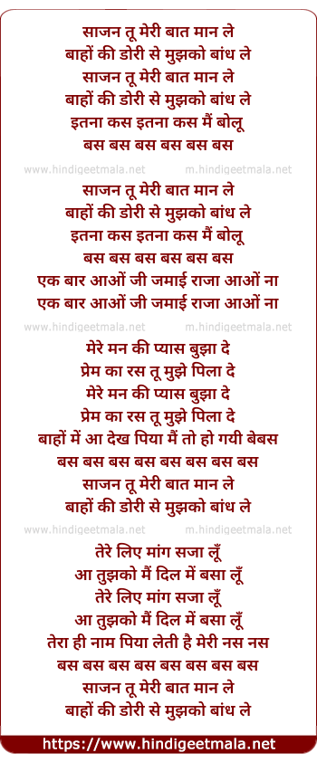Lyrics of Saajan Tu Meri Baat Maan Le - साजन तू मेरी बात मान ले