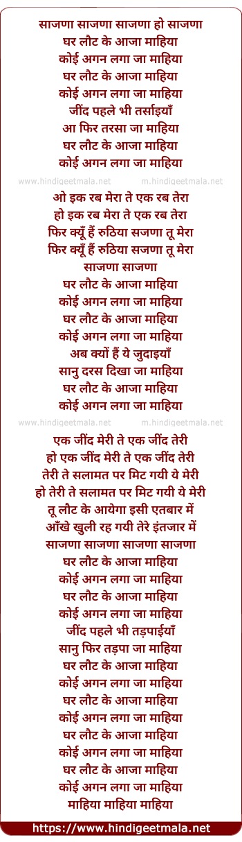 Lyrics of Saajana (Film Version) - साजणा साजणा साजणा हो साजणा