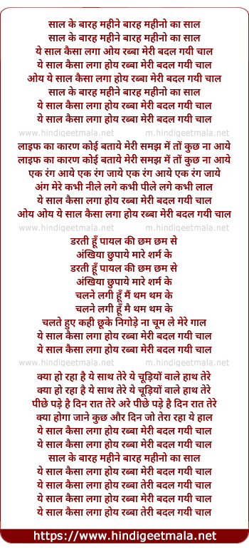Lyrics of Saal Ke Baarah Mahine - साल के बारह महीने