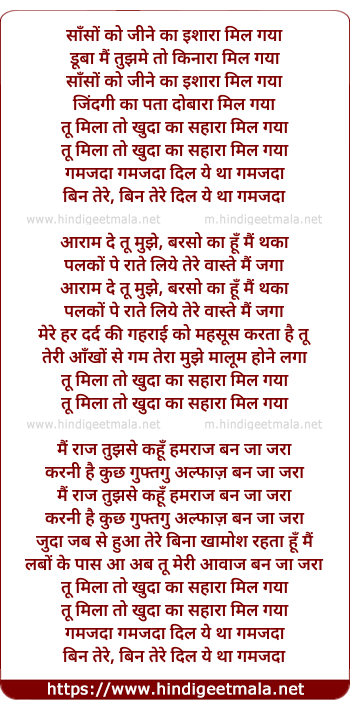 Sounds somewhat similar to Main dhoondne ko zamaane main .Nevermind