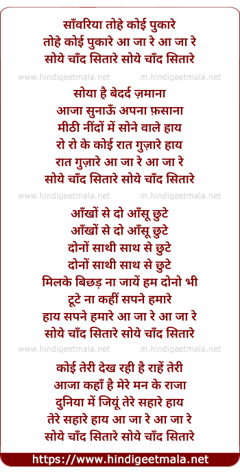 Lyrics of Saanvariyaa Tohe Koi Pukaare - साँवरिया तोहे कोई पुकारे