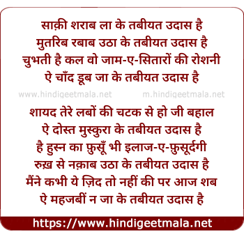 Lyrics of Saaqi Sharaab Laa Ke Tabiyat Udaas Hai - साक़ी शराब ला के तबीयत उदास है