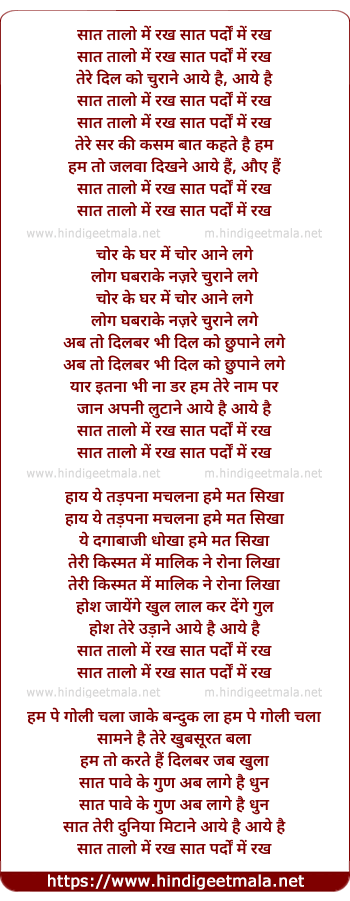 Lyrics of Saat Taalon Mein Rakh Saat Pardo Me Rakh - सात तालो में रख सात पर्दों में रख