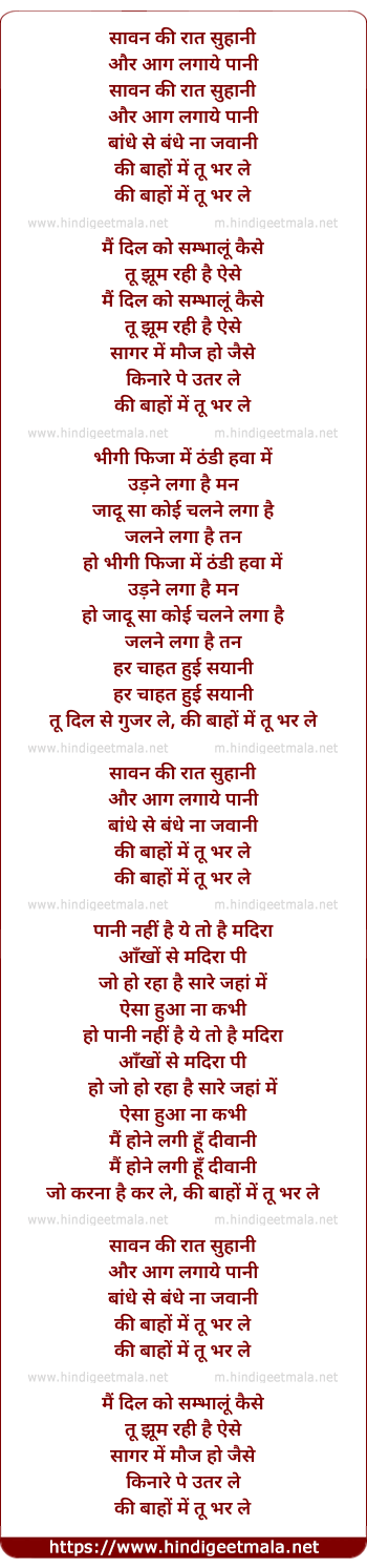 Lyrics of Sawan Ki Rat Suhani - सावन की रात सुहानी