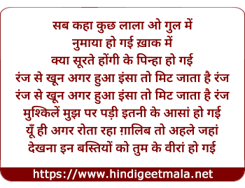 Lyrics of Sab Kaha Kuch Lala O Gul Me - सब कहाँ कुछ लाला ओ गुल में
