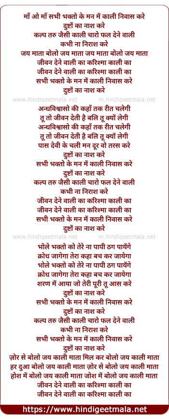 Lyrics of Sabhi Bhakto Ke Maan Me Kali Niwas Kare - सभी भक्तो के मन में काली निवास करे