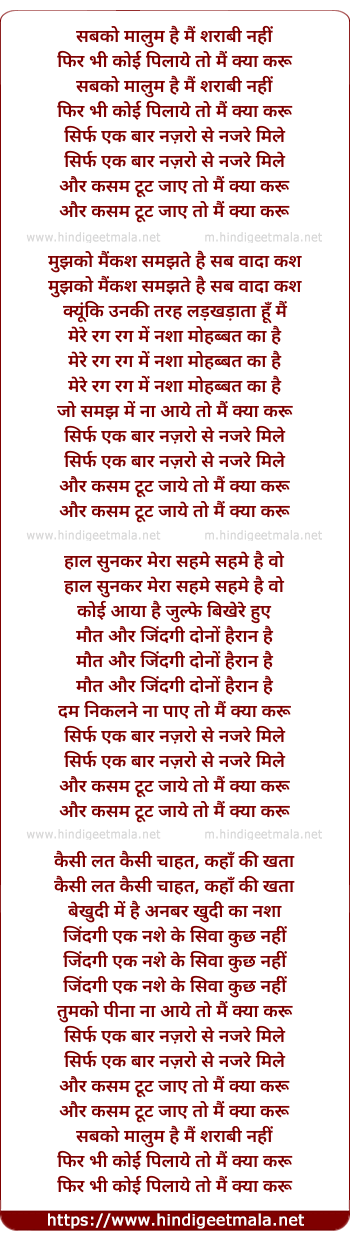 Lyrics of Sabko Maalum Hai Mai Sharaabee Nahee - सबको मालुम है मैं शराबी नहीं