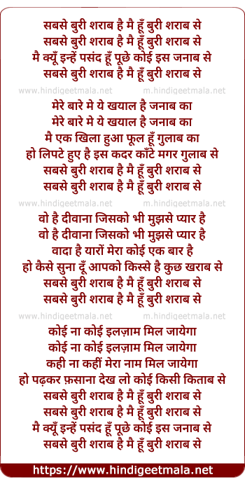 Lyrics of Sabse Buri Sharab Hai - सबसे बुरी शराब है