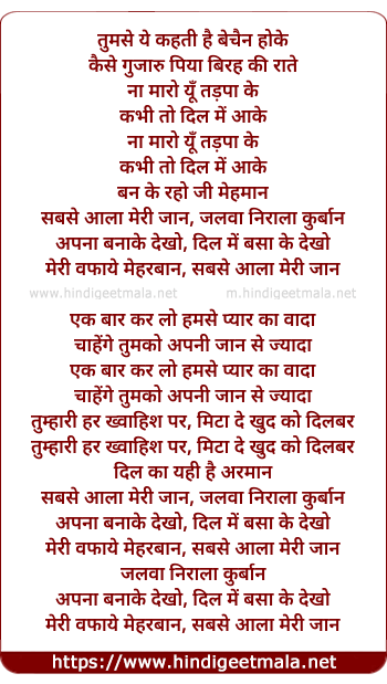 Lyrics of Sabse Aala Meri Jaan - सबसे आला मेरी जान