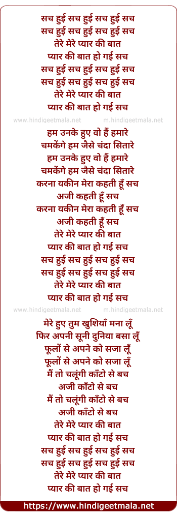 Lyrics of Sach Hui Sach Mere Tere Pyar Ki Baat - सच हुई सच मेरे तेरे प्यार कि बात