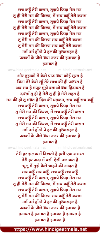 Lyrics of Sach Kahu - सच कहूँ तेरी कसम, तुझपे फ़िदा मेरा मन